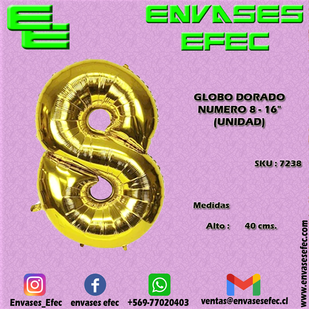 GLOBO DORADO NUMERO 8 – 16″ (UNIDAD)