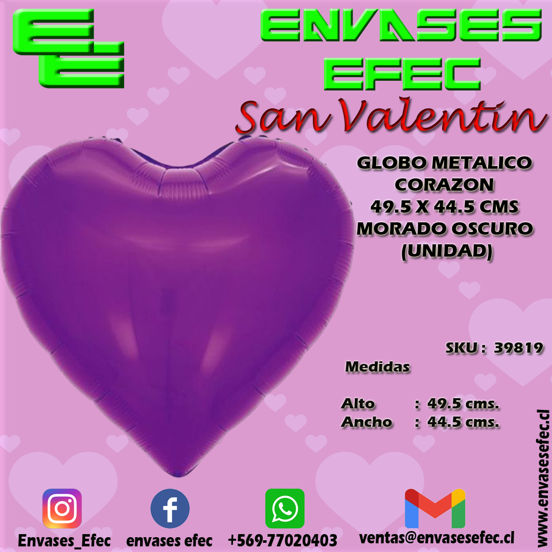 GLOBO METALICO CORAZON 49.5 X 44.5 CMS MORADO OSCURO (UNIDAD)