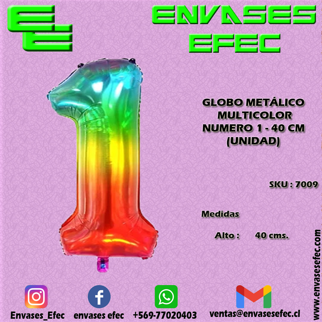 GLOBO METÁLICO MULTICOLOR NUMERO 1 – 40 CM (UNIDAD)