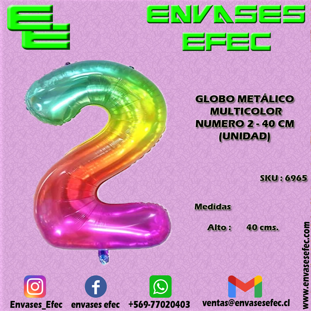 GLOBO METÁLICO MULTICOLOR NUMERO 2 – 40 CM (UNIDAD)
