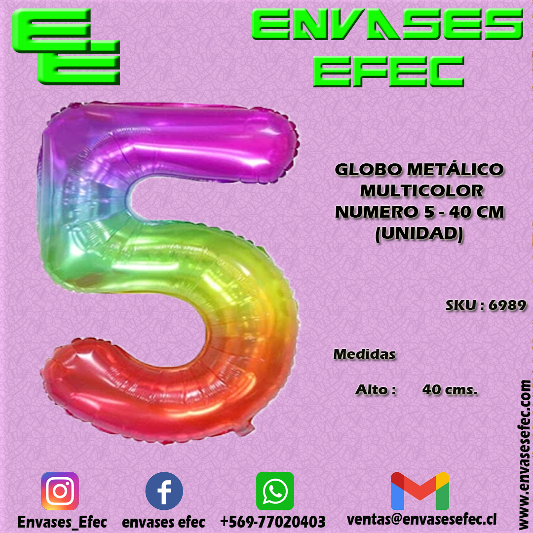 GLOBO METÁLICO MULTICOLOR NUMERO 5 – 40 CM (UNIDAD)