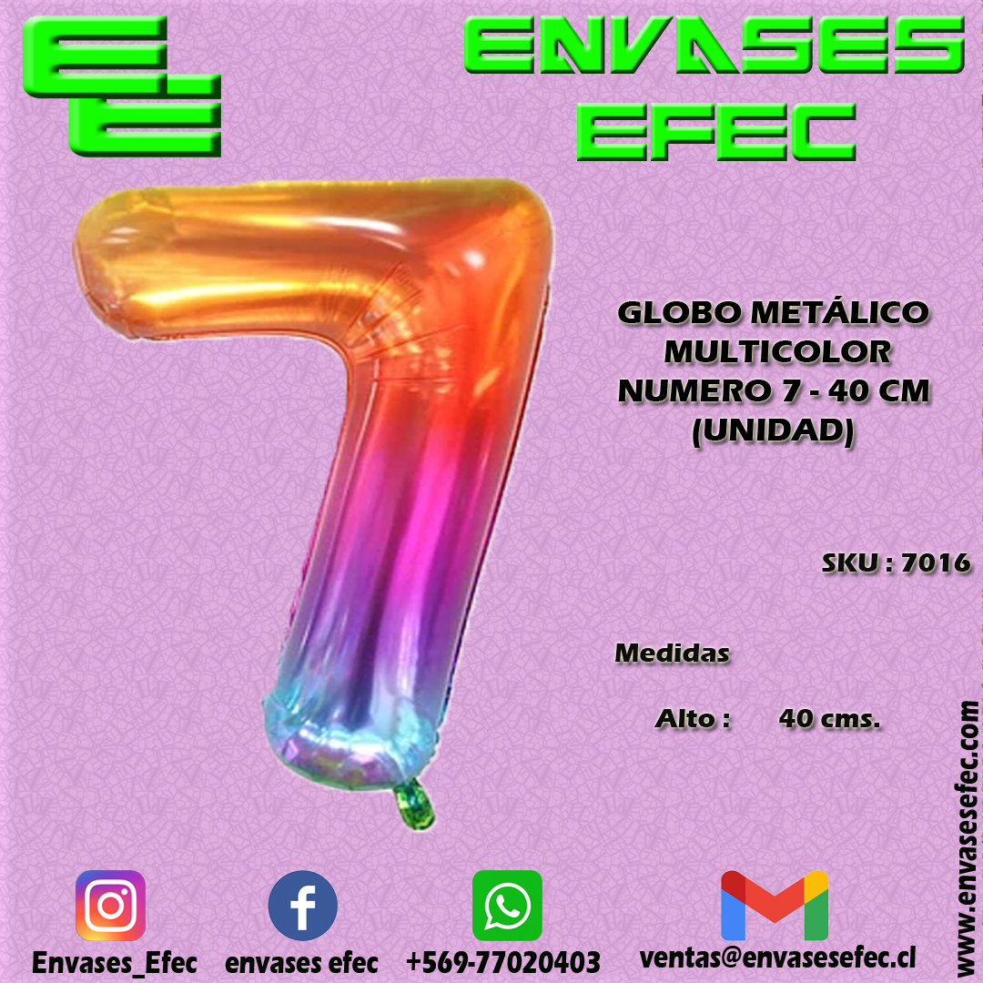 GLOBO METÁLICO MULTICOLOR NUMERO 7 – 40 CM (UNIDAD)