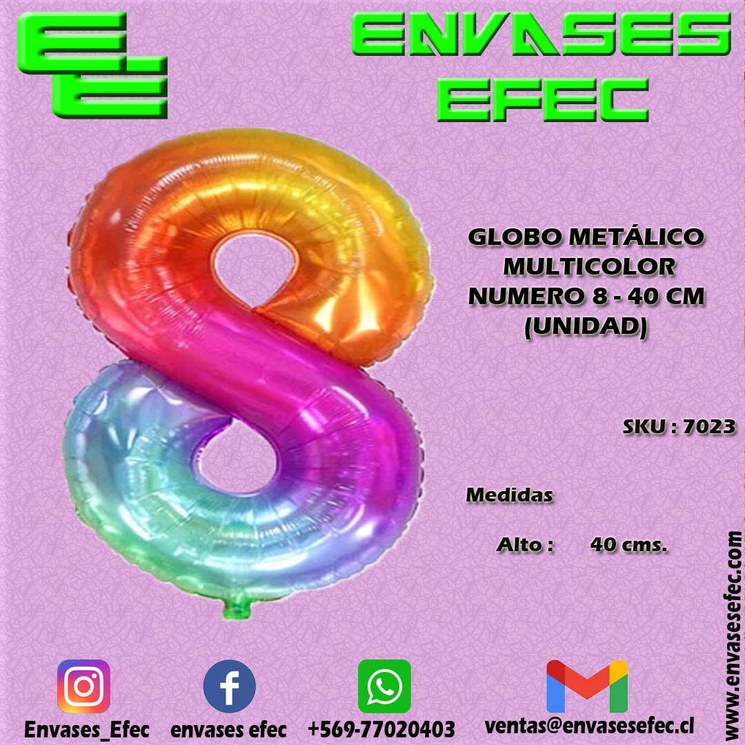 GLOBO METÁLICO MULTICOLOR NUMERO 8 – 40 CM (UNIDAD)