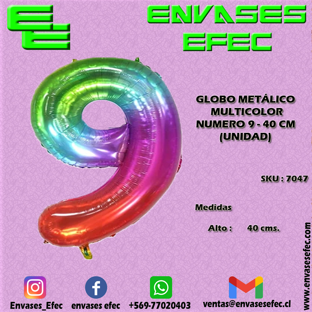 GLOBO METÁLICO MULTICOLOR NUMERO 9 – 40 CM (UNIDAD)