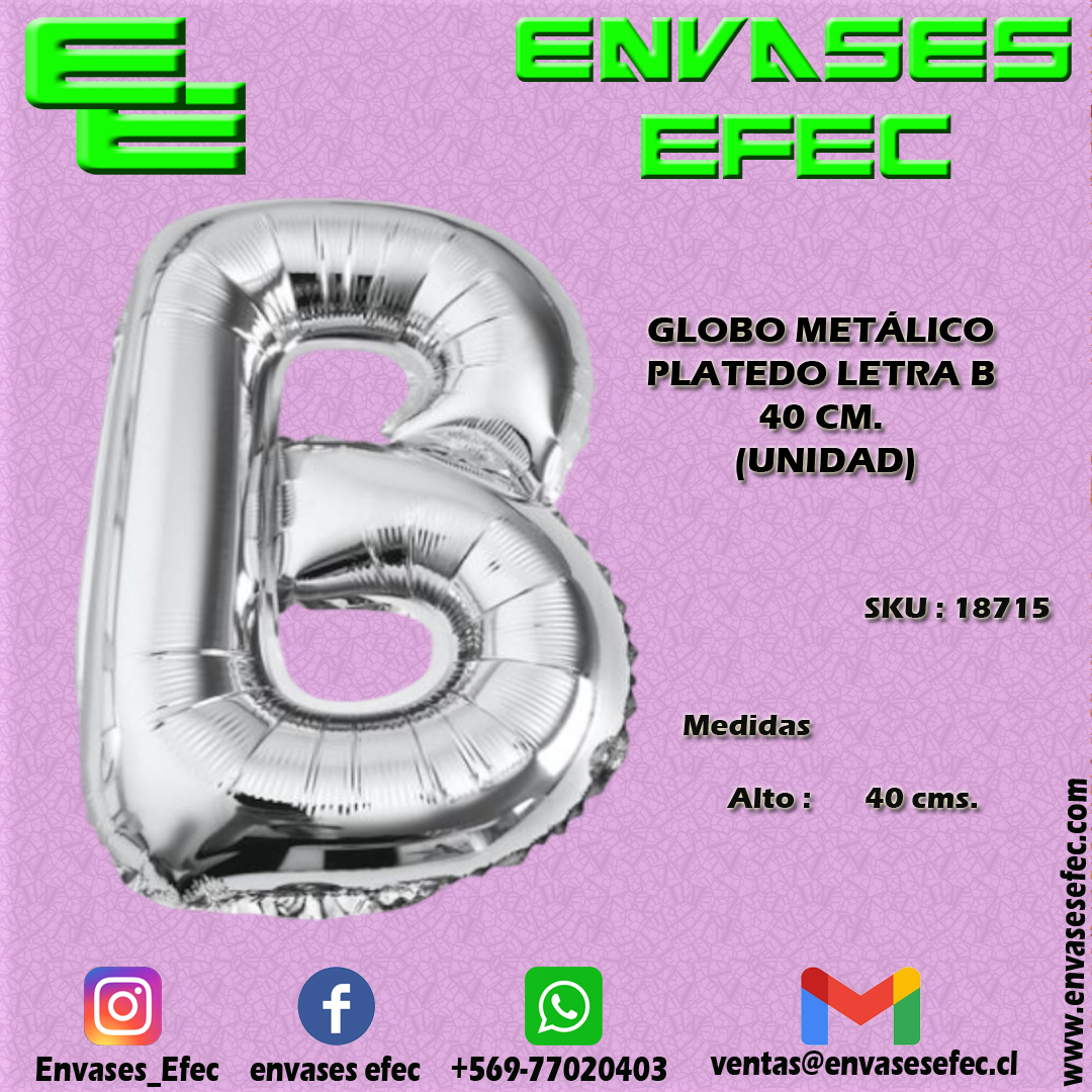 GLOBO METÁLICO PLATEADO LETRA B – 40 CM (UNIDAD)