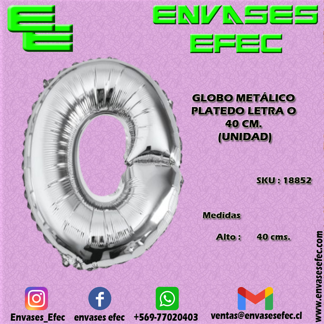 GLOBO METÁLICO PLATEADO LETRA O – 40 CM (UNIDAD)