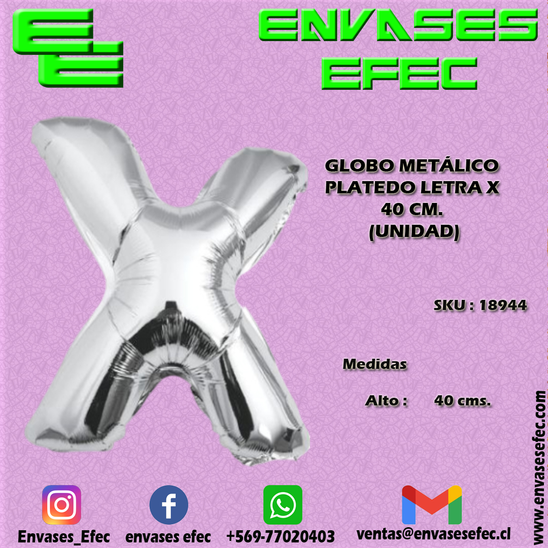 GLOBO METÁLICO PLATEADO LETRA X – 40 CM (UNIDAD)
