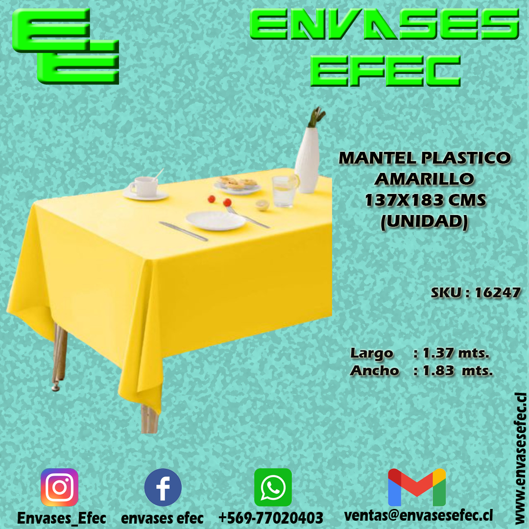 MANTEL PLASTICO AMARILLO 137X183 CMS (UNIDAD)