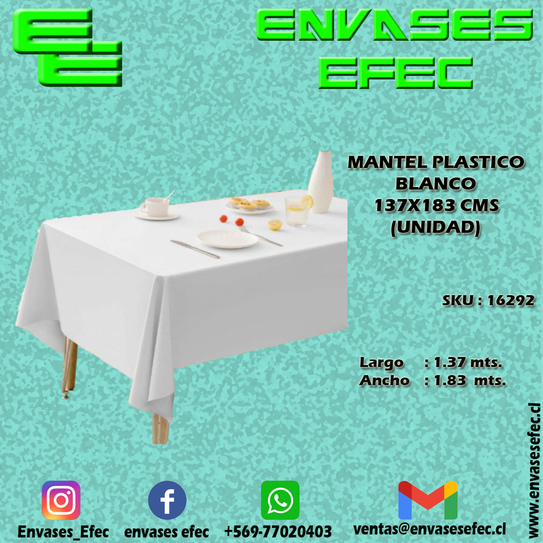 MANTEL PLASTICO BLANCO 137X183 CMS (UNIDAD)