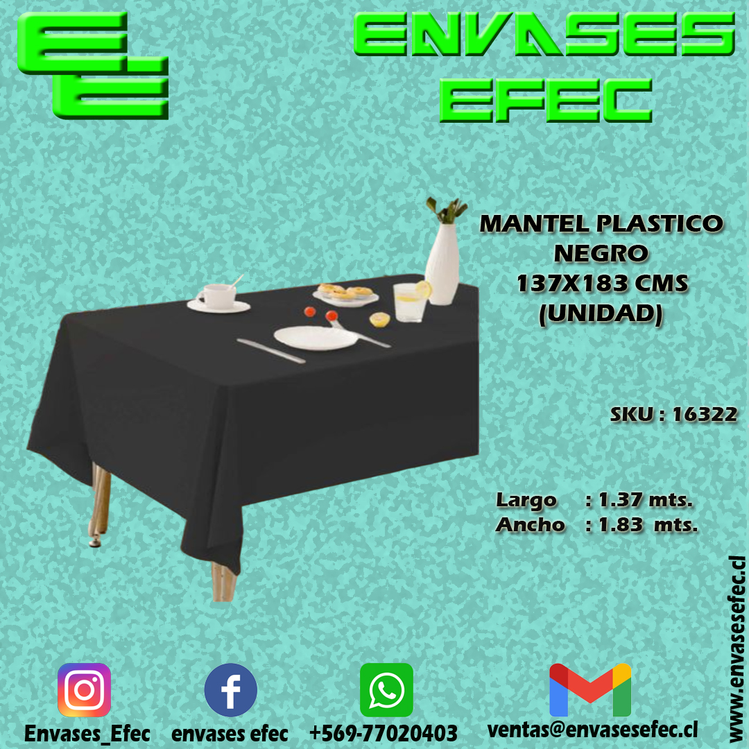 MANTEL PLASTICO NEGRO 137X183 CMS (UNIDAD)