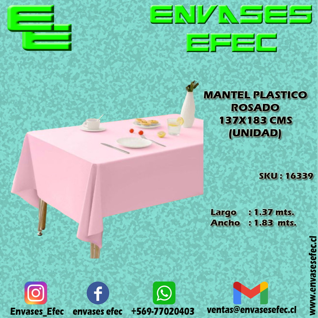 MANTEL PLASTICO ROSADO 137X183 CMS (UNIDAD)