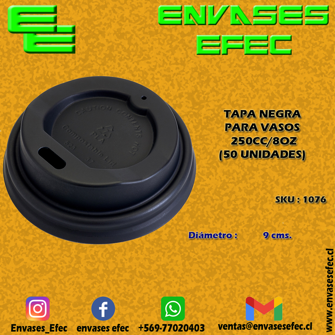 TAPA NEGRA PARA VASOS 250CC/8OZ (50 UNIDADES)