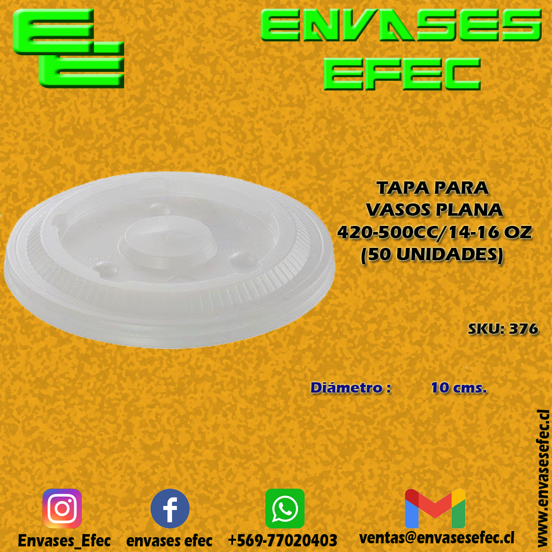 TAPA PARA VASOS PLANA 420-500CC/14-16 OZ (50 UNIDADES)