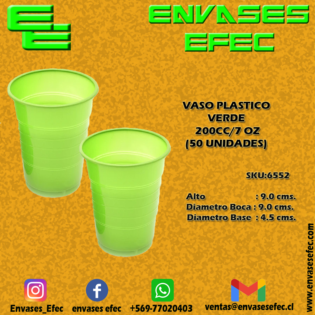 VASO PLASTICO VERDE 200CC/7 OZ (50 UNIDADES)