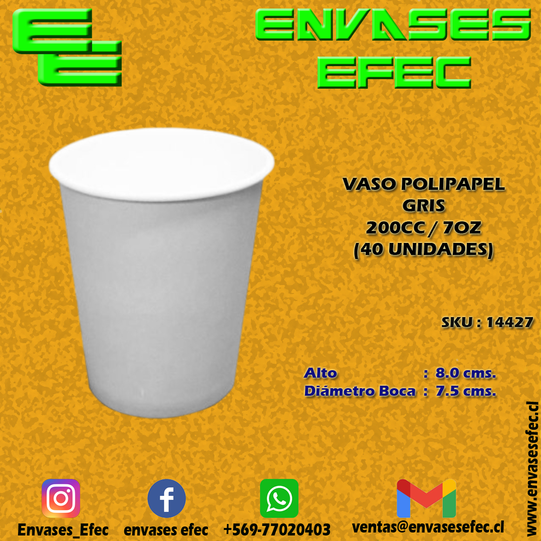 VASO POLIPAPEL GRIS 200CC / 7 OZ (40 UNIDADES)