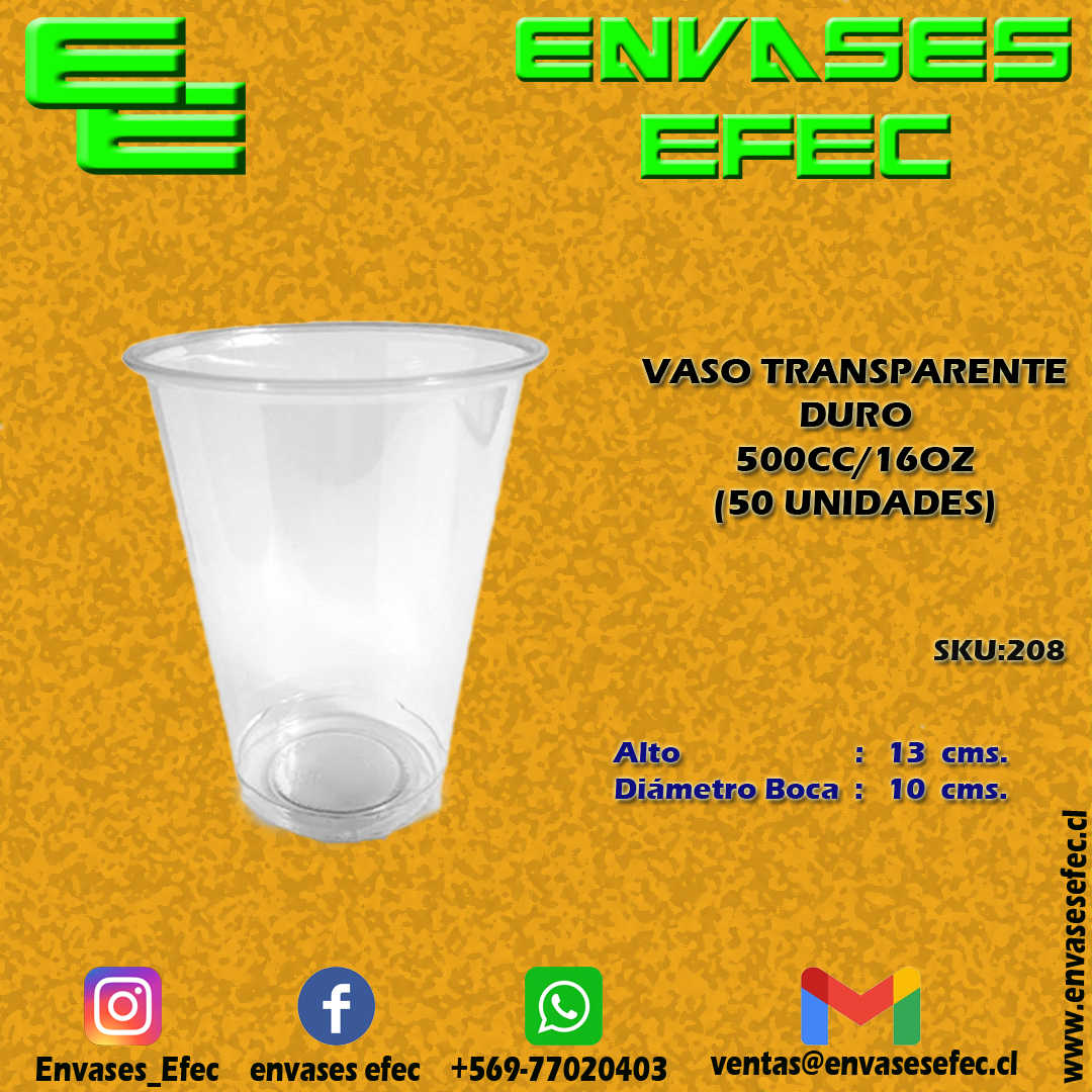 VASO TRANSPARENTE DURO 500CC/16OZ (50 UNIDADES)