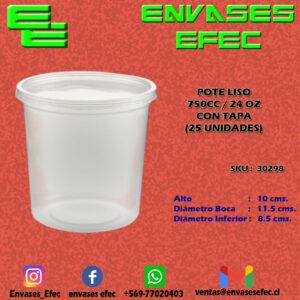 POTE LISO 750CC / 24OZ CON TAPA (25 UNIDADES)